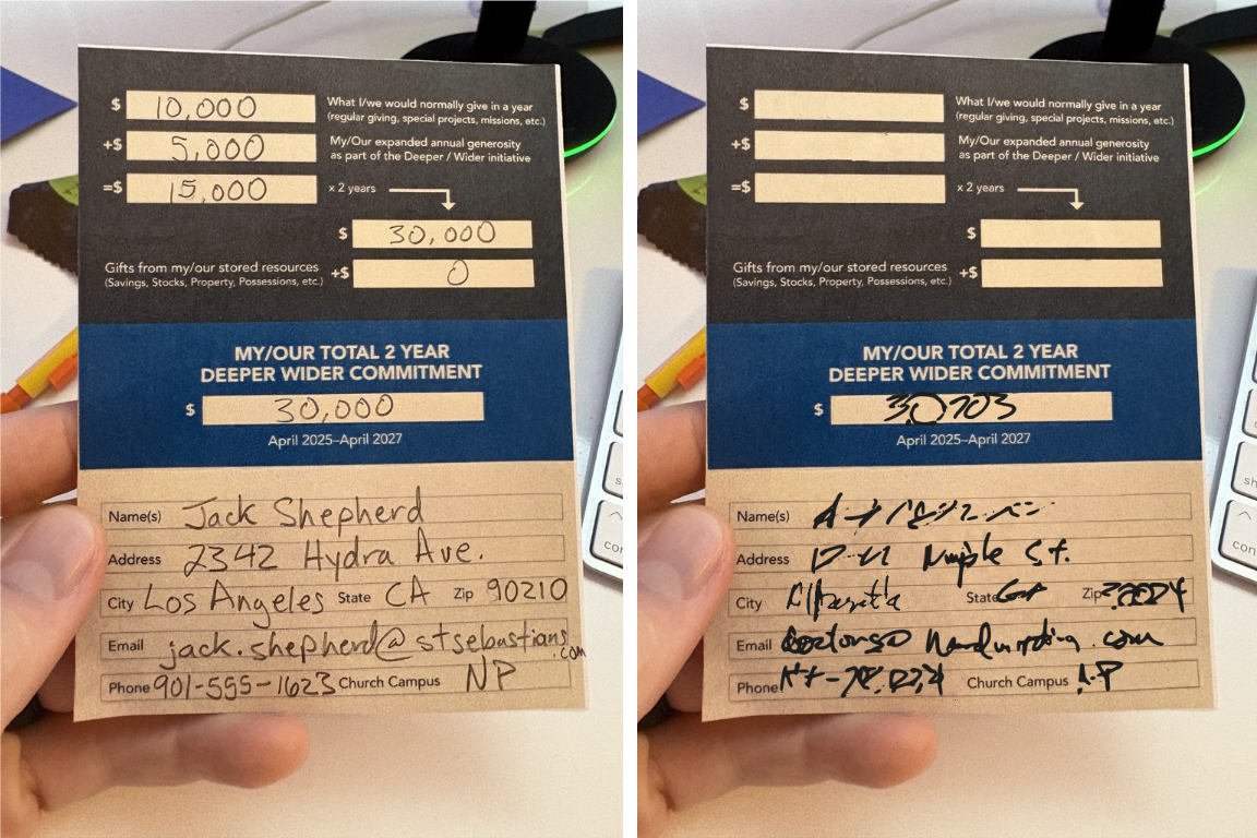 Handwritten pledge cards are one of the hardest inputs to normalize at scale. Every card is different. Handwriting varies wildly. Cards are folded, smudged, incomplete, or partially illegible. Some are pristine. Others are barely readable.